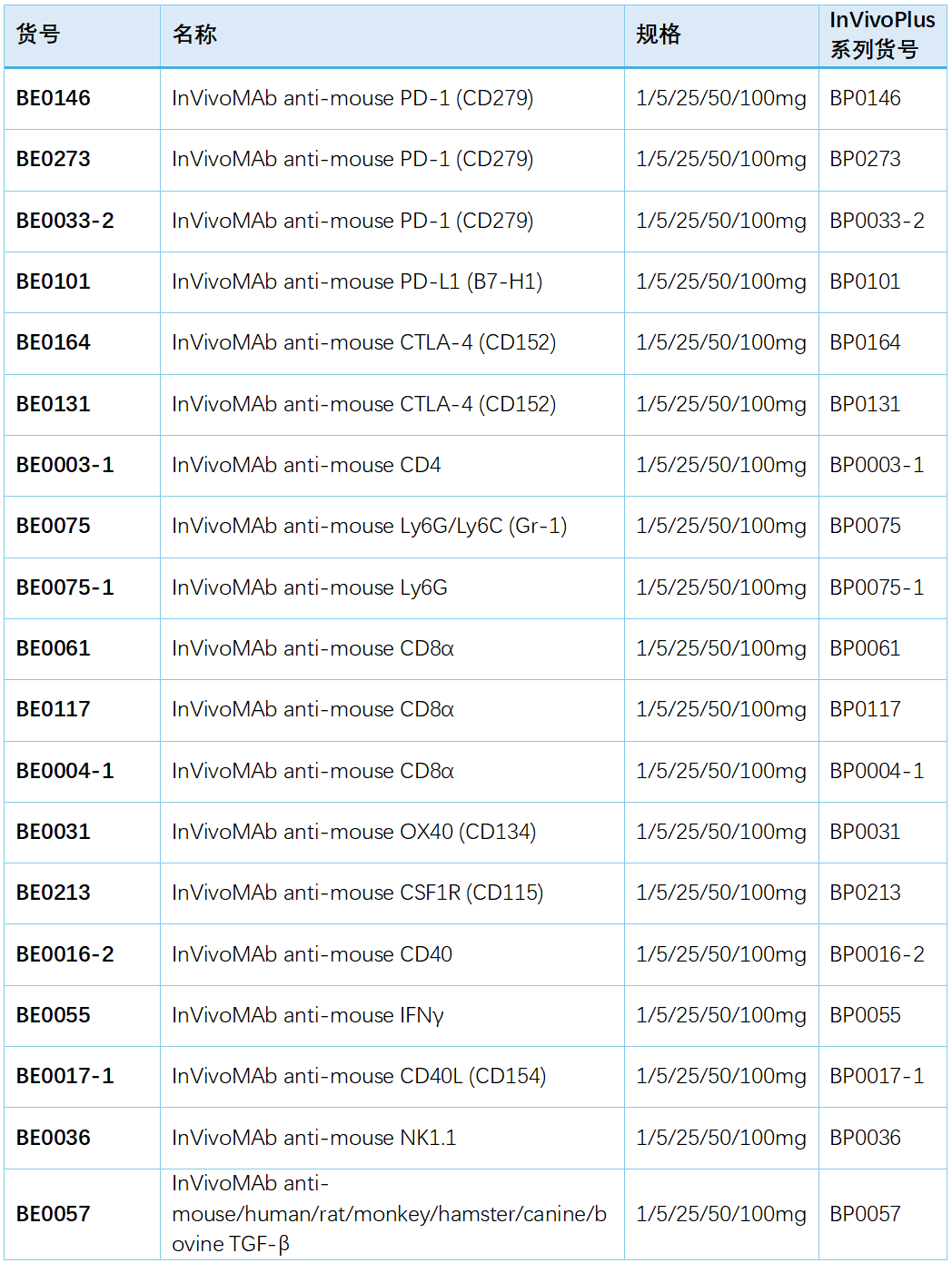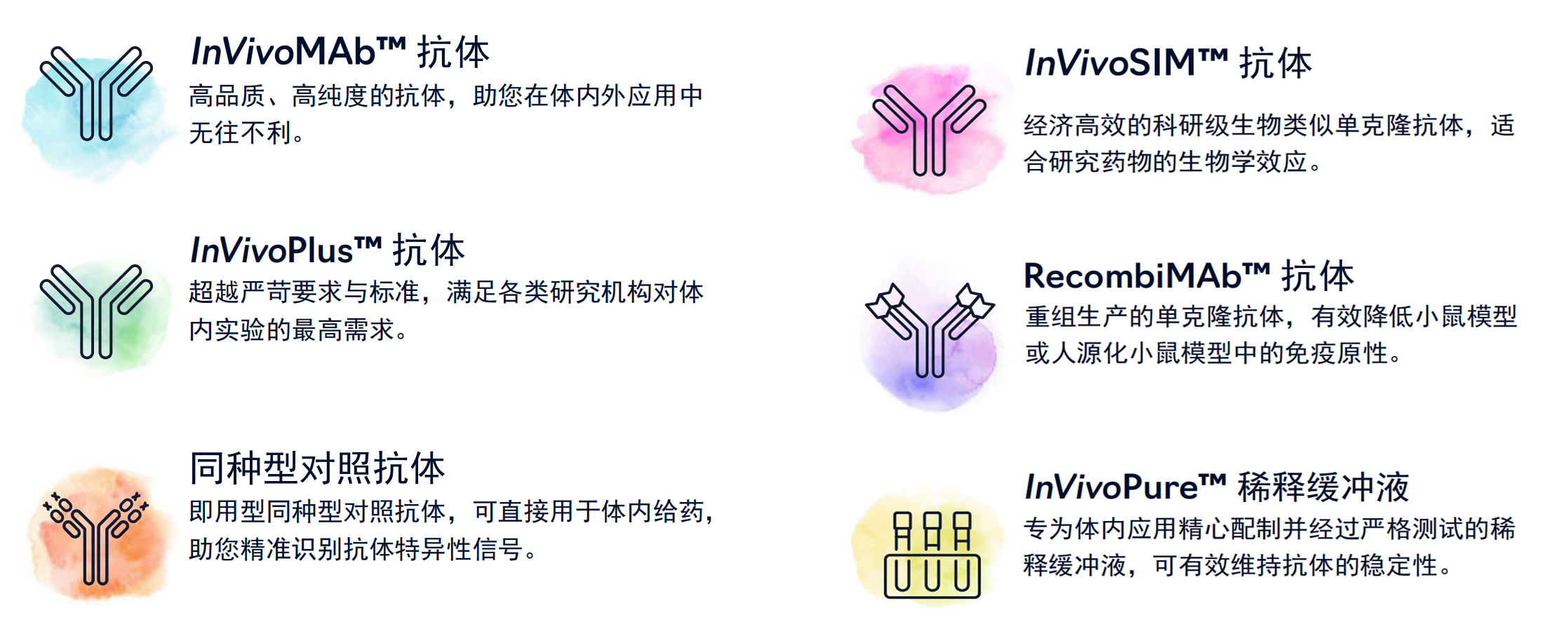 7.提供齐全的同型对照抗体:BioXCell提供多种匹配InVivoPlusTM系列和InVivoPlusTM系列产品的同型对照抗体。