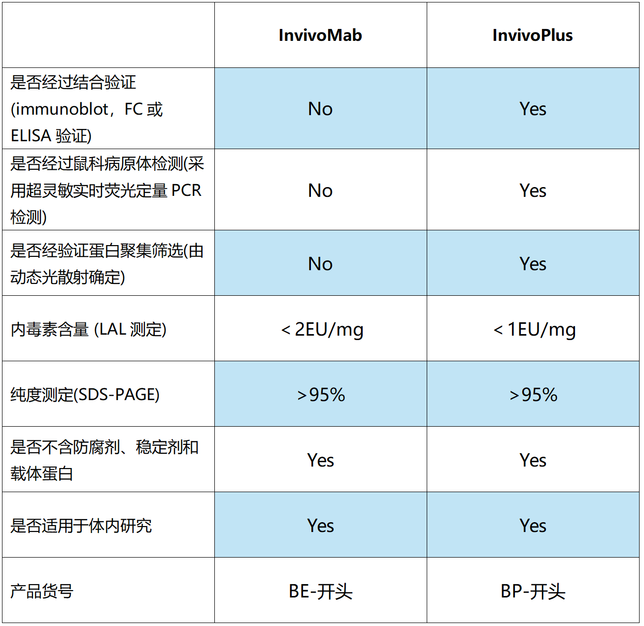 BioXCell的InVivoMab和InVivoPlus产品线之间如何选择?