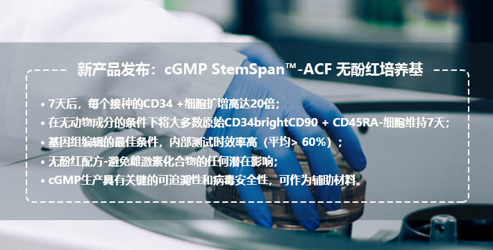 - 对ACF条件培养其他类型细胞(像巨核细胞等)感兴趣的科研人员,应使用StemSpan™-ACF培养基。