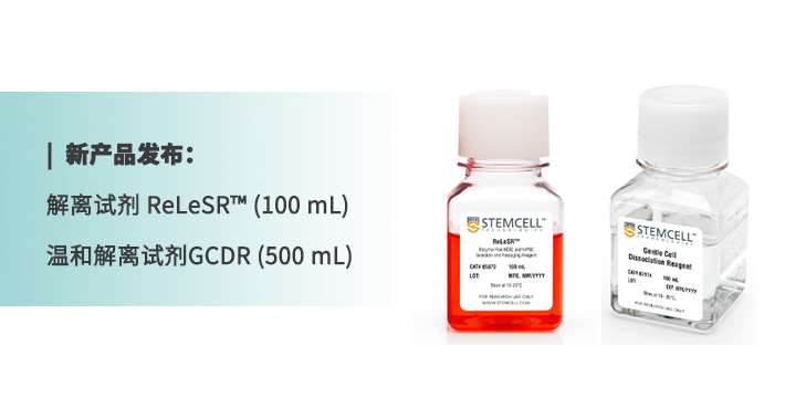 STEMCELL很高兴向大家宣布678体育 不断扩大的 cGMP 产品系列新增两款产品:解离试剂 ReLeSR™ (100 mL) 和温和解离试剂GCDR (500 mL) 的两种可替代规格,以支持在cGMP生产流程中有不同需求的客户。